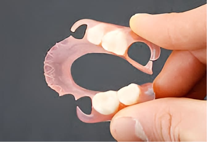 ノンメタルクラスプデンチャーとは、入れ歯のバネの部分に金属を使用していない入れ歯のことをいいます。
