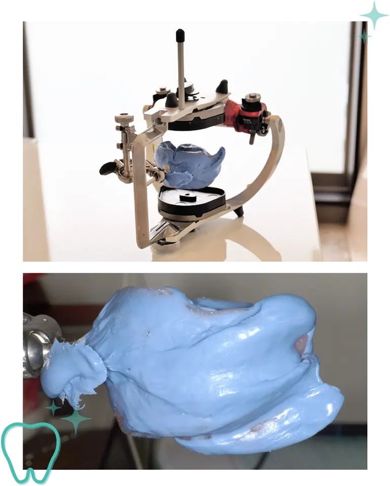 型取りをし、あなた専用の型をそのまま咬合器(噛み合わせの器械)にセットするため全く狂いがありません。