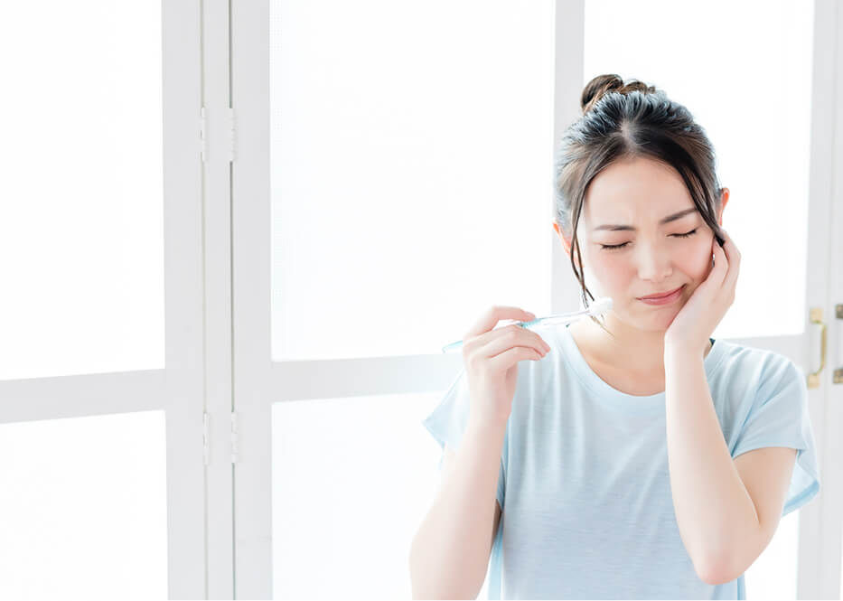 エナメル質の内側には象牙質がありますが、虫歯が象牙質まで進むと虫歯の部分が黒く見え、冷たいものや熱いものを食べた時に歯が痛むことがあります。