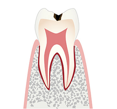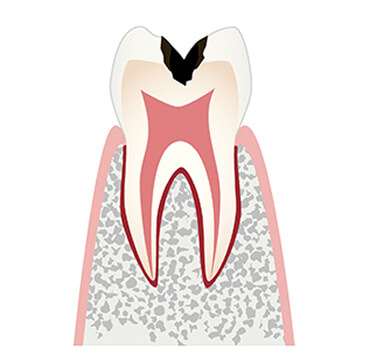 虫歯は上の歯と下の歯の噛み合せの部分や、歯と歯の間などに発生しやすく、この段階ではまだほとんど痛みはありません。